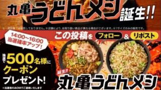 丸亀製麺の新登場!丸亀うどんメシキャンペーン【SNS懸賞】。丸亀うどんメシ500円引きクーポンが抽選で500名様に当たり...