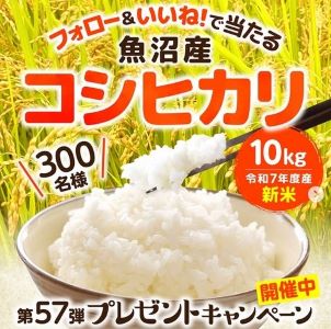 令和7年度産 新米 魚沼産 コシヒカリ10kgが抽選で合計300名様に当たります。