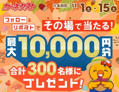 カーネクストの11月フォロー&リポストキャンペーン【SNS懸賞】。