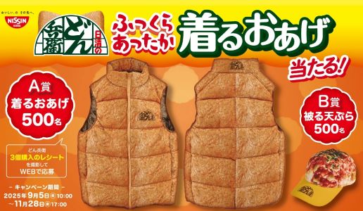 「着るおあげ」や「被る天ぷら」が抽選で合計1,000名様に当たります。