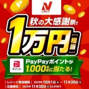 ニチレイ秋の大感謝祭CPで PayPayポイント1万円分が1000名様に当たる【WEB懸賞】〆切2025/11/30
