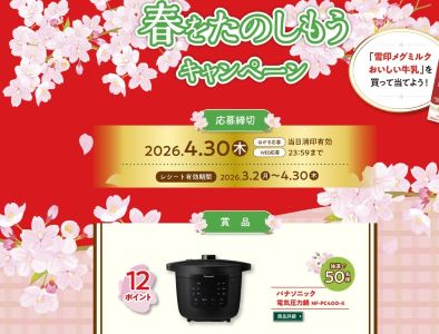 雪印メグミルクおいしい牛乳の春をたのしもうキャンペーン【WEB・はがき応募、クローズド懸賞】。