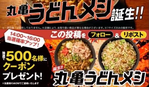 丸亀製麺の新登場!丸亀うどんメシキャンペーン【SNS懸賞】。